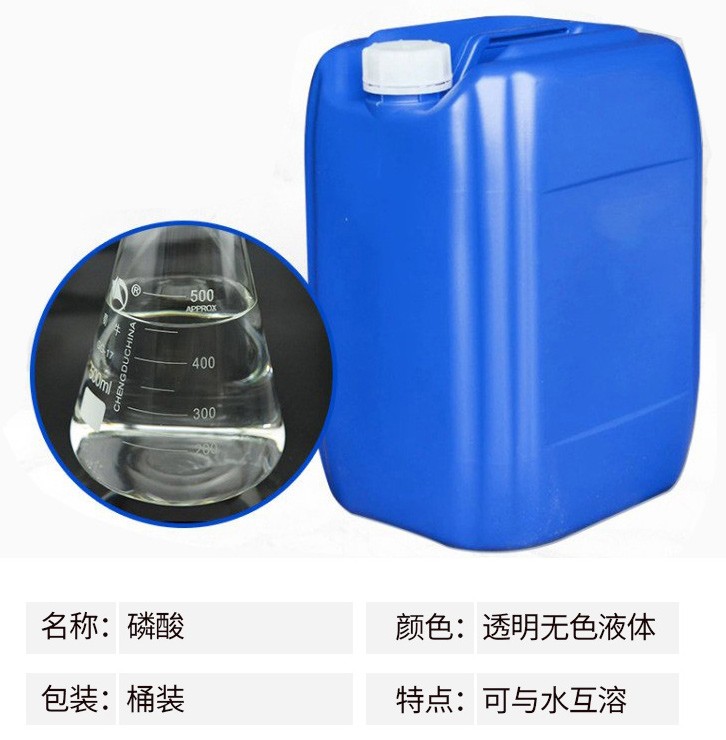熔點42.35℃,比重1.70,高沸點酸,可與水以任意比互溶,沸點213℃時(失去1/2水),則生成焦磷酸。加熱至300℃時變成偏磷酸。相對密Chemicalbook度181.834。易溶于水,溶于乙醇。磷酸是一種常見的無機酸,是中強酸。其酸性較硫酸、鹽酸和硝酸等強酸弱,但較醋酸、硼酸、碳酸等弱酸強。磷酸與碳酸鈉反應時在不同的pH下,可生成不同的酸式鹽。能刺激皮膚引起發(fā)炎,破壞肌體組織。濃磷酸在瓷器中加熱時有侵蝕作用。有吸濕性,密封保存。磷酸主要應用領(lǐng)域如下:金屬表面鋼管磷化處理,配制電解拋光液和化學拋光液;鋁制品的拋光;制造各種磷酸鹽、飼料級磷酸氫鈣、酸式磷酸錳、焦磷酸鉀;醫(yī)藥工業(yè)用于制造甘油磷酸鈉、磷酸鐵,制造青霉素時調(diào)節(jié)酸堿度;用于制造磷酸鋅作為牙科補牙時粘合劑;塑料用于酚醛樹脂縮合的催化劑Chemicalbook;染料及中間體生產(chǎn)用的干燥劑;印刷用于配制揩去膠印彩印版上污點的清洗劑;火柴用于浸漬火柴梗,能使燃燒過的火柴梗不成灰而成炭狀,使用時較為安全;冶金用于生產(chǎn)耐火泥,提高煉鋼爐壽命;橡膠用于漿料的凝固劑及生產(chǎn)無機粘結(jié)劑的原料;涂料用于金屬防銹漆;食品工業(yè)用作酸性調(diào)味劑。